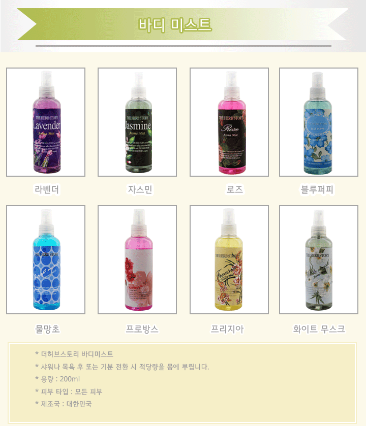 전성분 : 정제수,에탄올,프로필렌글라이콜,향료,피이지-60하이드로제네이티드캐스터오일,적색2호,황색4호,녹차추출물,벤조페논-3,녹색3호,청색1호,